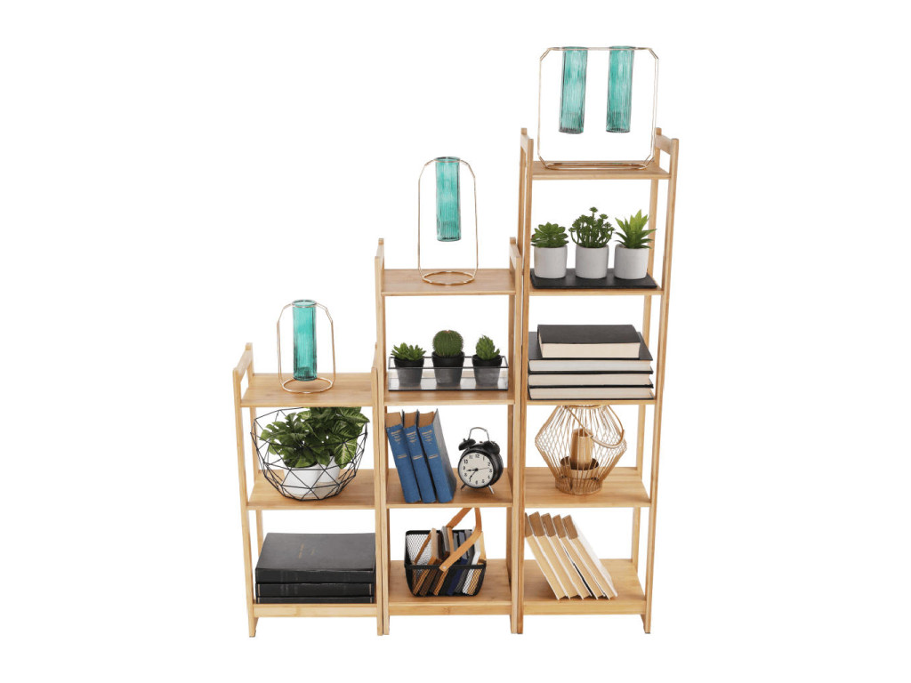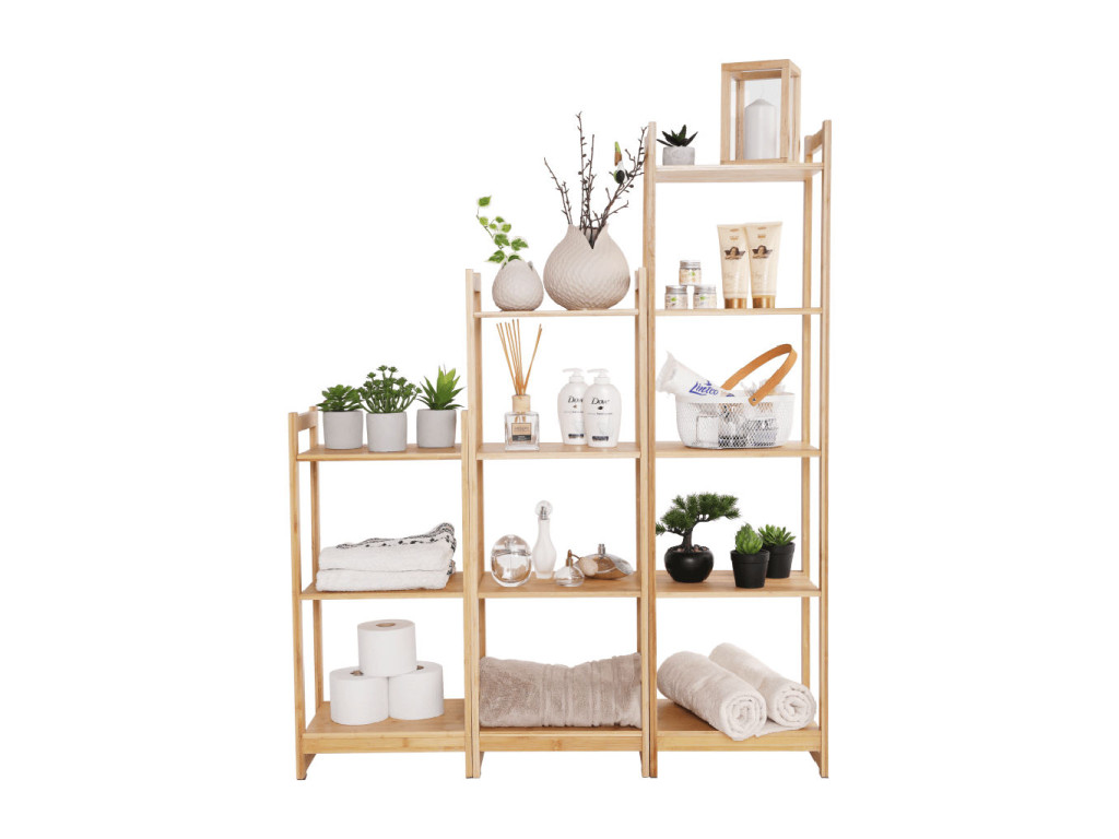 Bambusový regál IMPEROR 3 lze kombinovat s 3-policovým regálem IMPEROR 1 a 4-policovým regálem IMPEROR 2, tak vznikne krásná policová sestava.