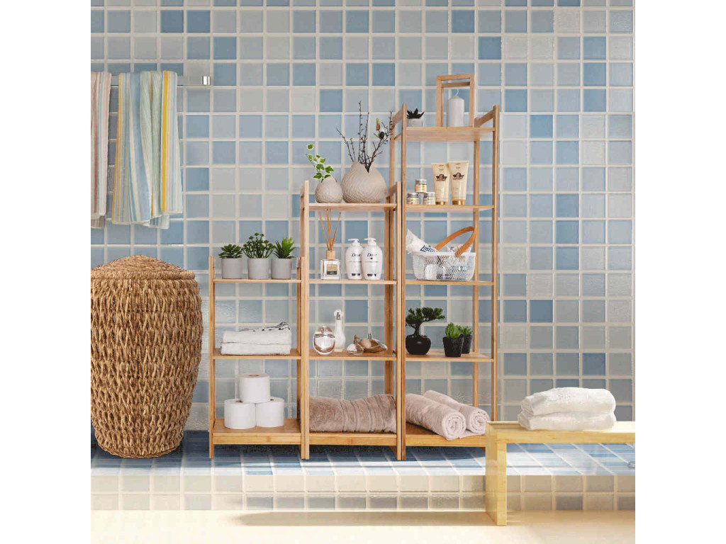 5-policový bambusový regál IMPEROR 3 je vyroben z přírodního bambusu. Povrch regálu je jemně opracovaný, což zabrání poranění nepříjemnými třískami.