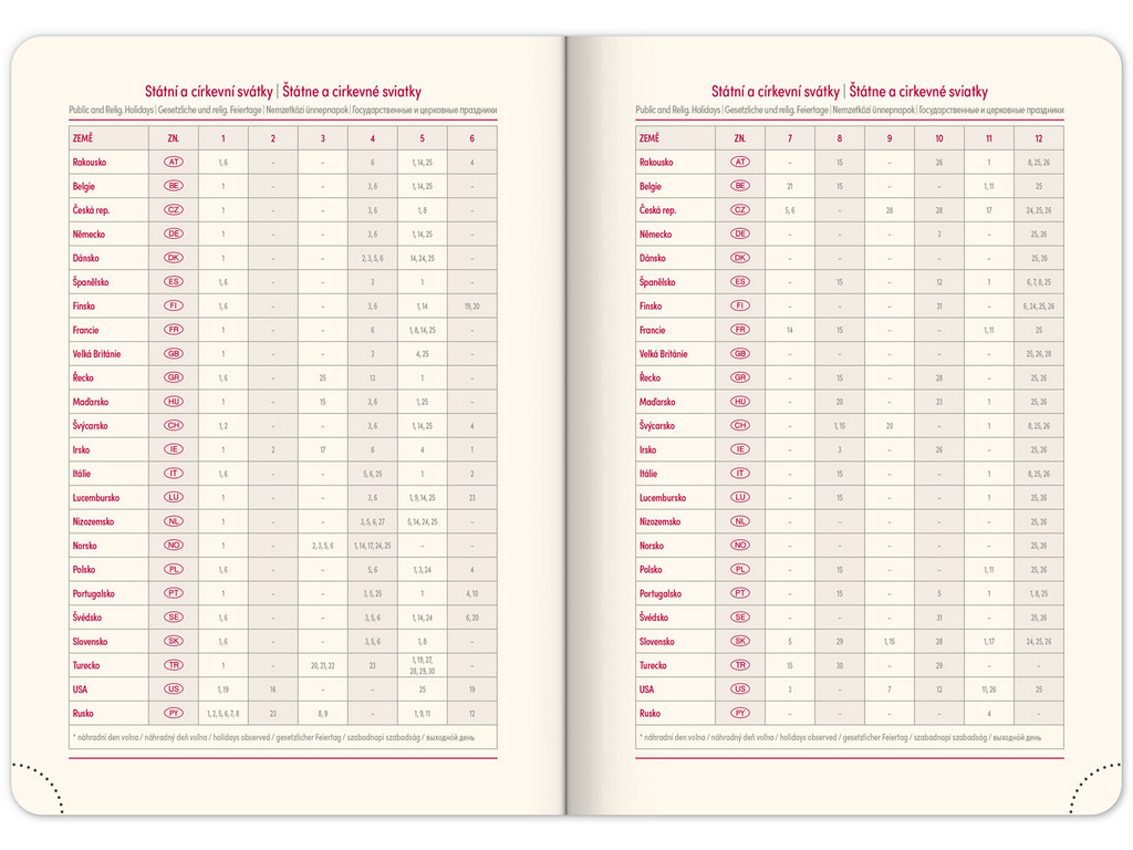 - svátky České a Slovenské republiky a mezinárodní svátky