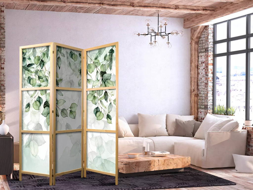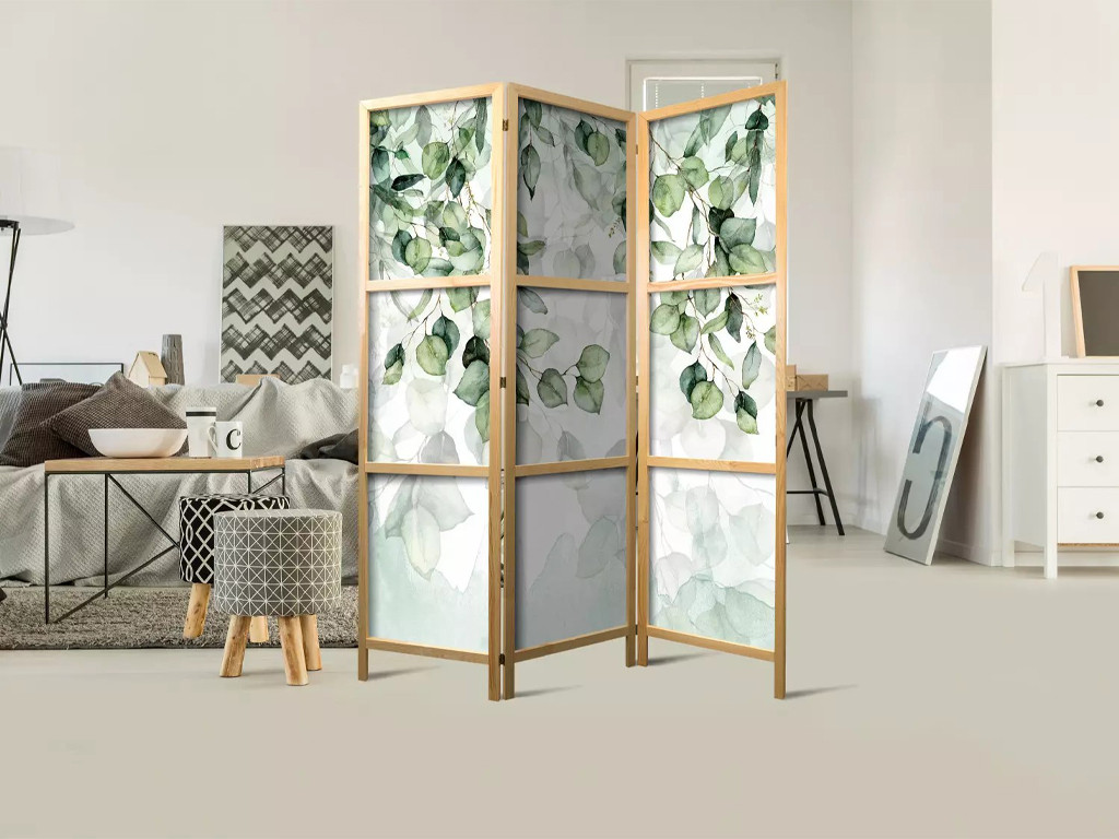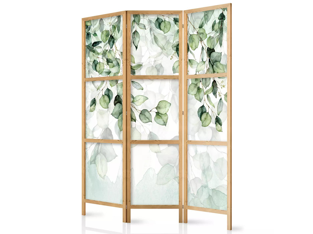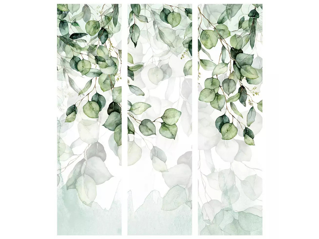 Dřevěný paraván Fabulo 3-dílný - Zelené listy 172 x 135 cm | potisk na jedné straně paravánu