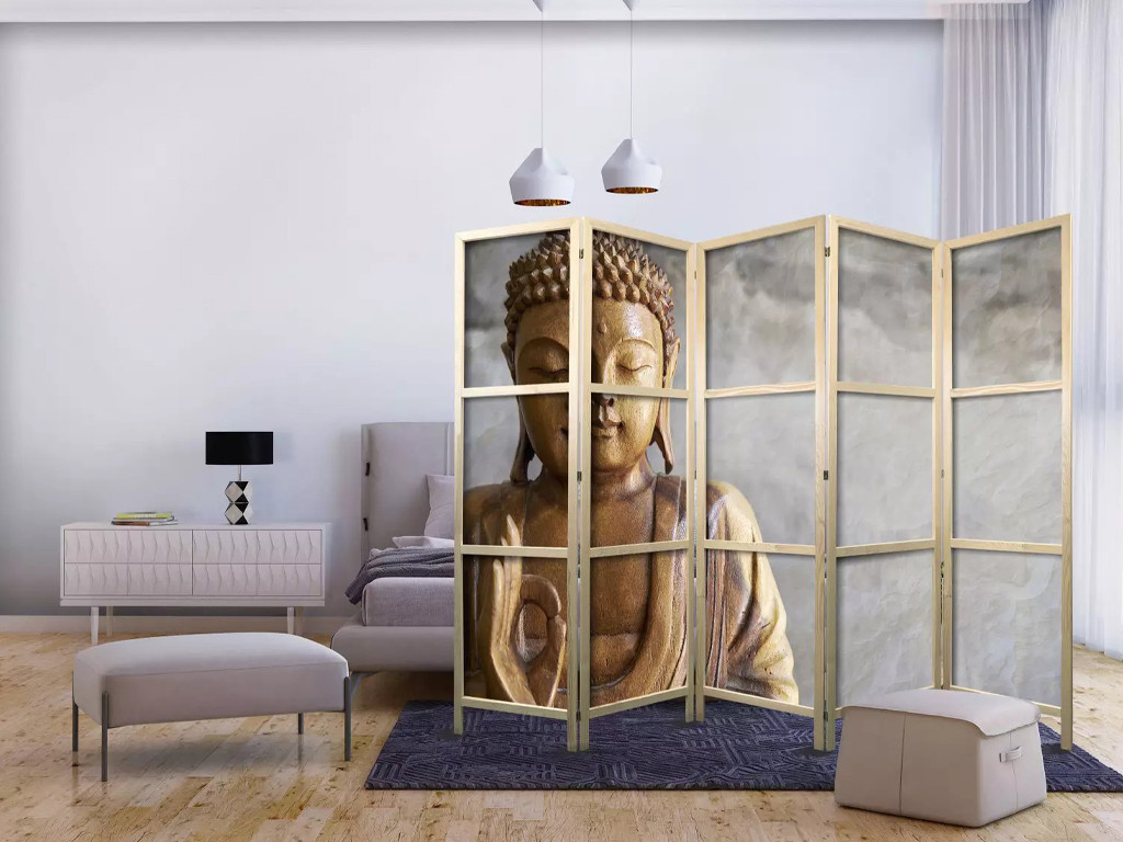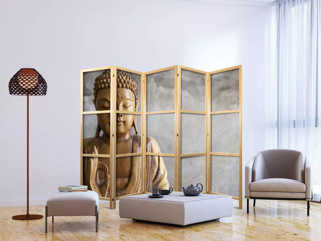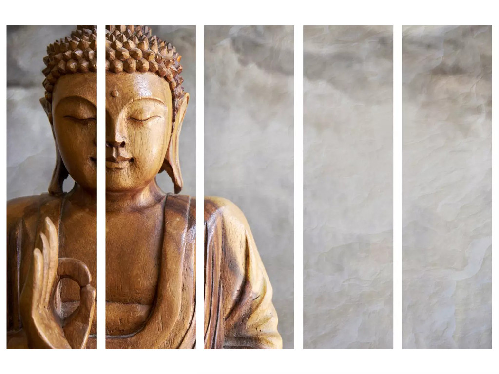 Dřevěný paraván Fabulo 5-dílný - Buddha 172 x 225 cm | potisk na jedné straně paravánu
