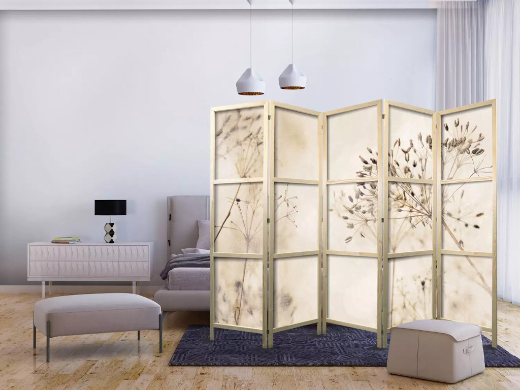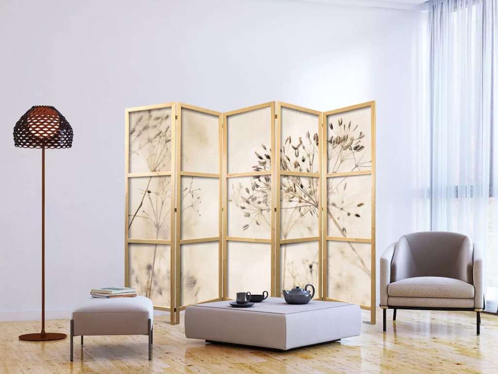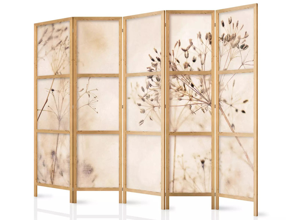 Dřevěný paraván Fabulo 5-dílný - Sušené květiny 172 x 225 cm | potisk na jedné straně paravánu