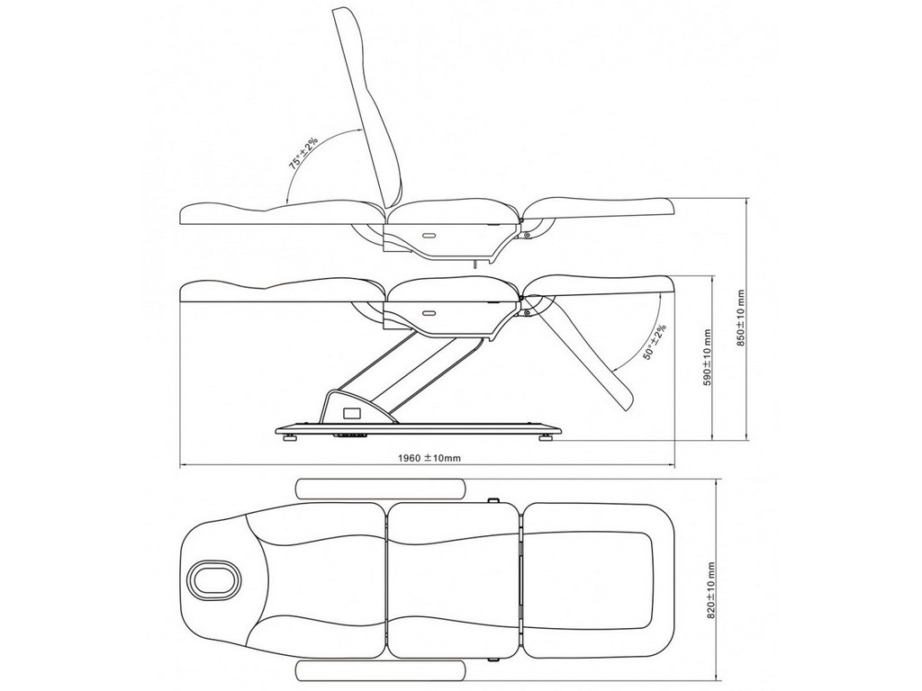 Kosmetické křeslo nastavíte jednoduše, snadno a rychle pomocí ručního ovladače, který je součástí balení. Křeslo disponuje dvěma motory pro elektrické nastavení výšky a zádové opěrky.
