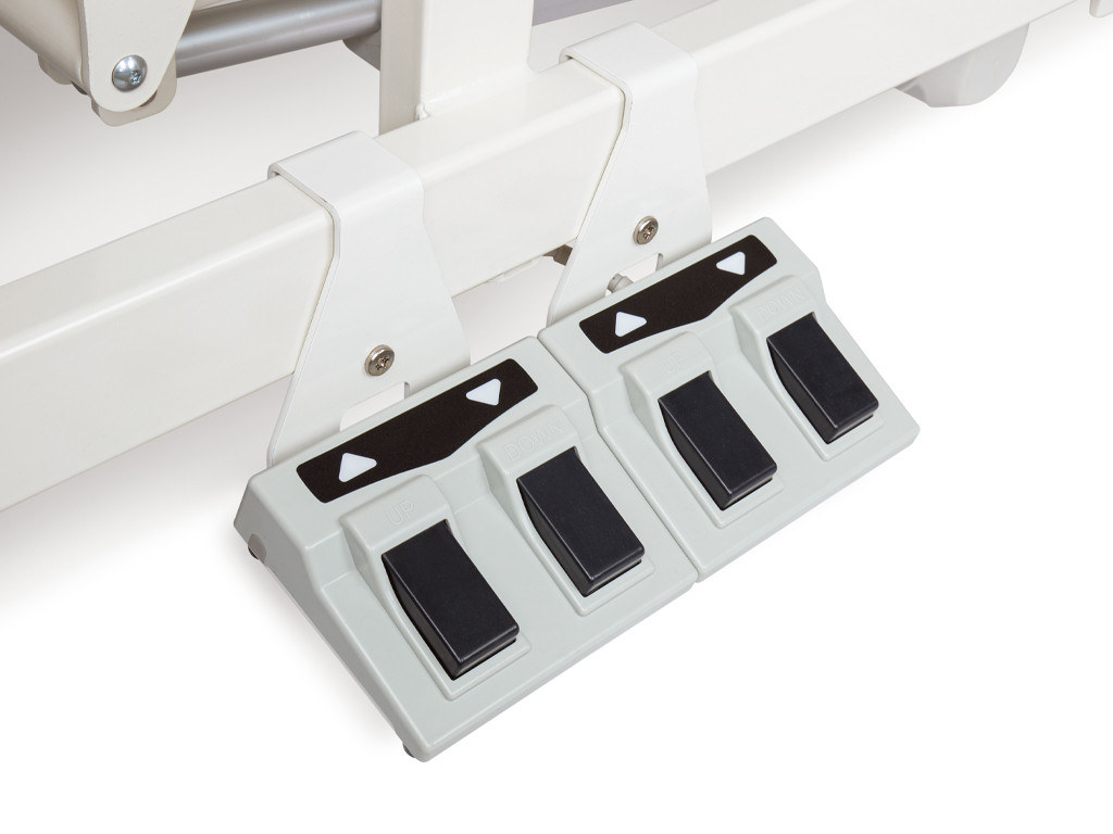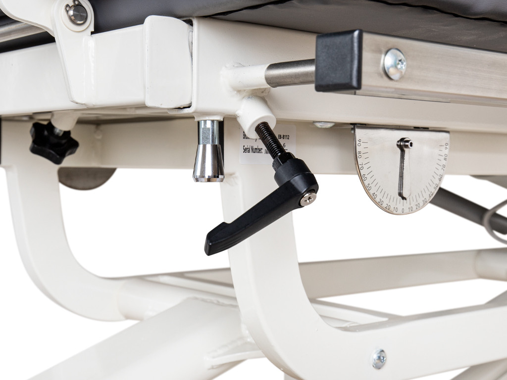 Lehátko je vybaveno elektrickým systémem naklánění, který se ovládá pomocí nožního pedálu přímo na konstrukci. Tato funkcionalita umožňuje plynulé a bezpečné vertikální zvednutí pacienta do stoje. Nezávislé opěrky na chodidla podporují stabilitu nohou a zároveň umožňují individuální nastavení polohy dolních končetin.