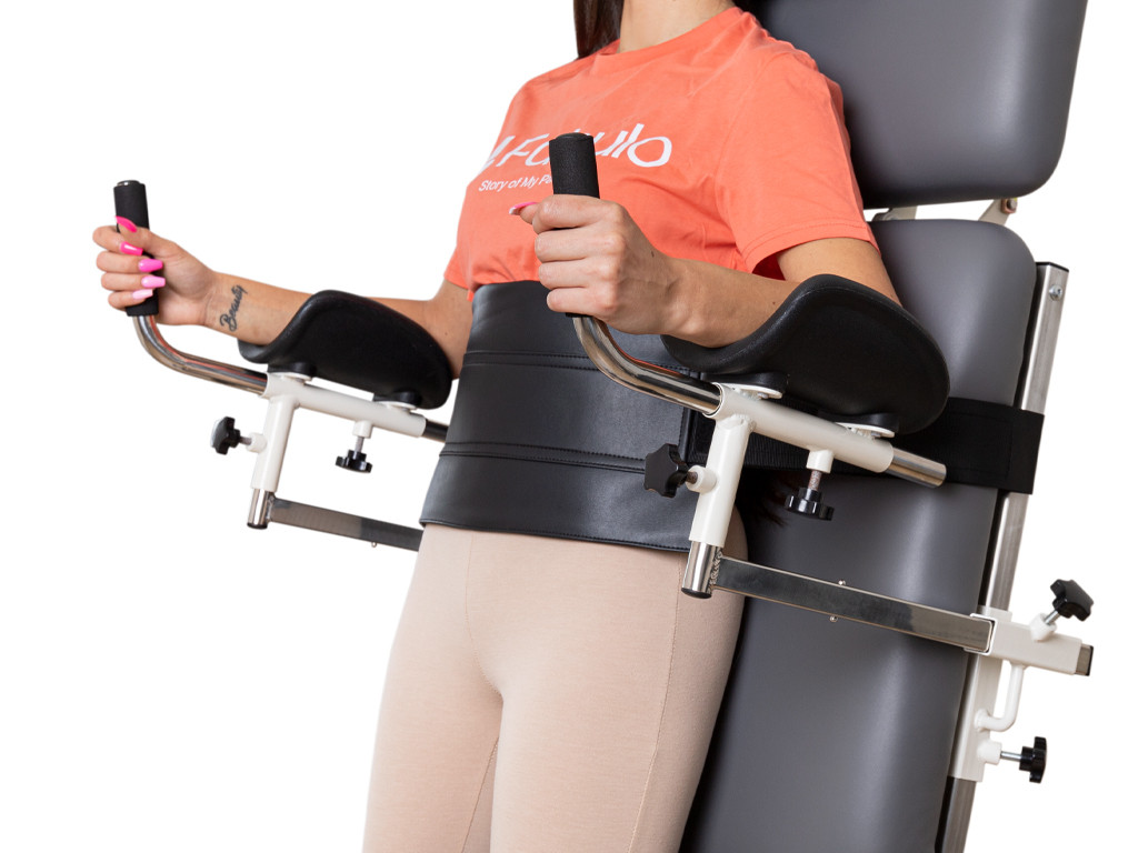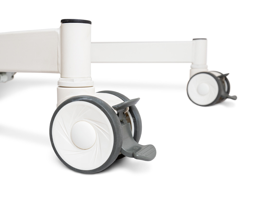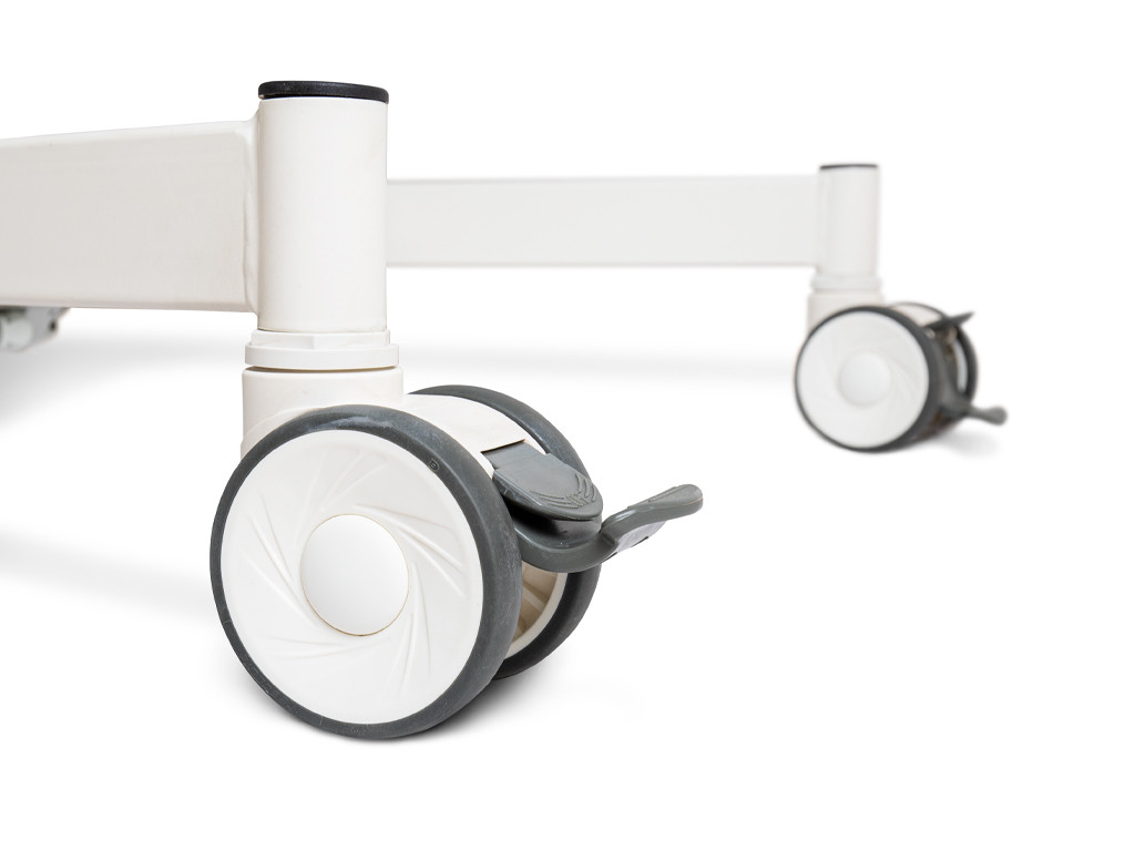 Díky robustnímu rámu na kolečkách je manipulace s lehátkem jednoduchá a bezpečná. K lehátku lze samostatně dokoupit, dle potřeb pacienta či typu terapie, i různé doplňkové příslušenství, jako např. fixační pásy nebo opěrky, které nejsou součástí základního modelu.