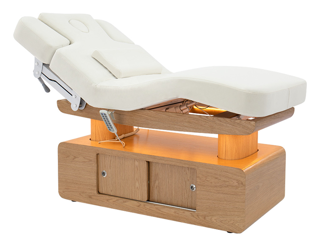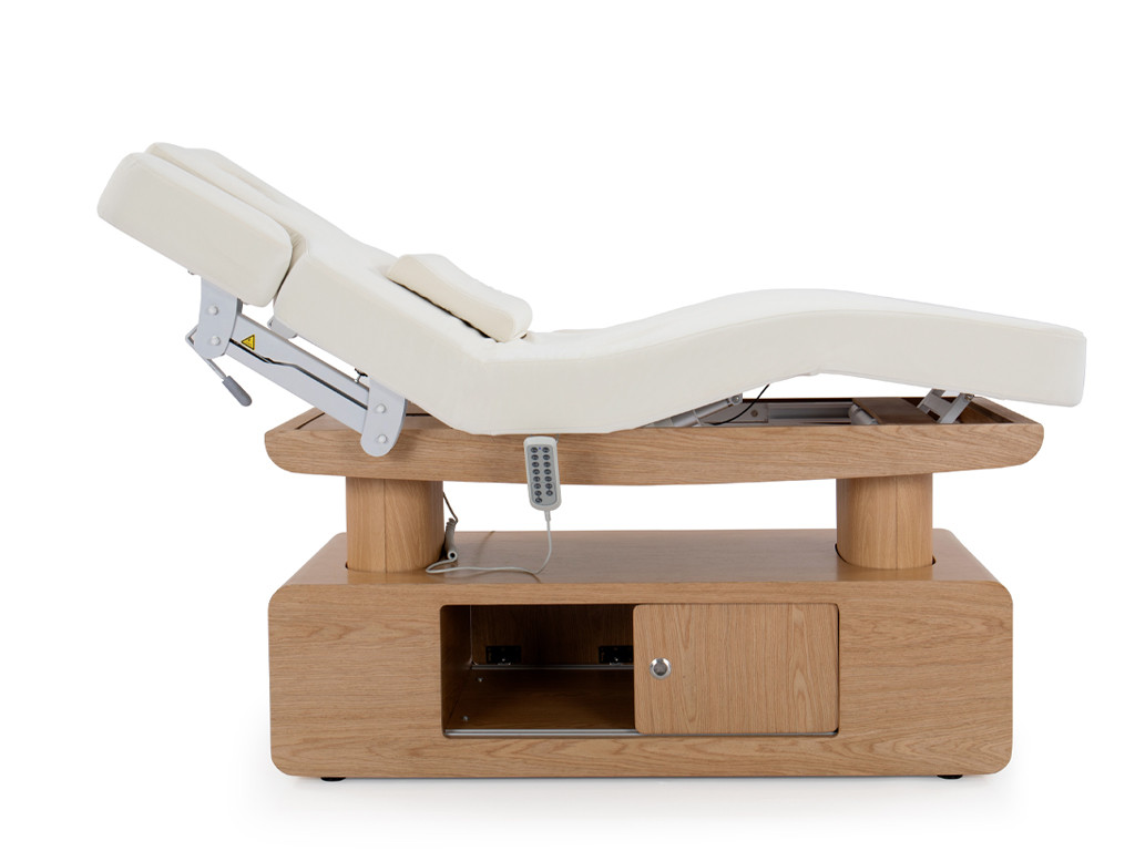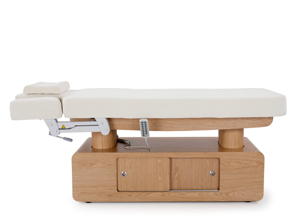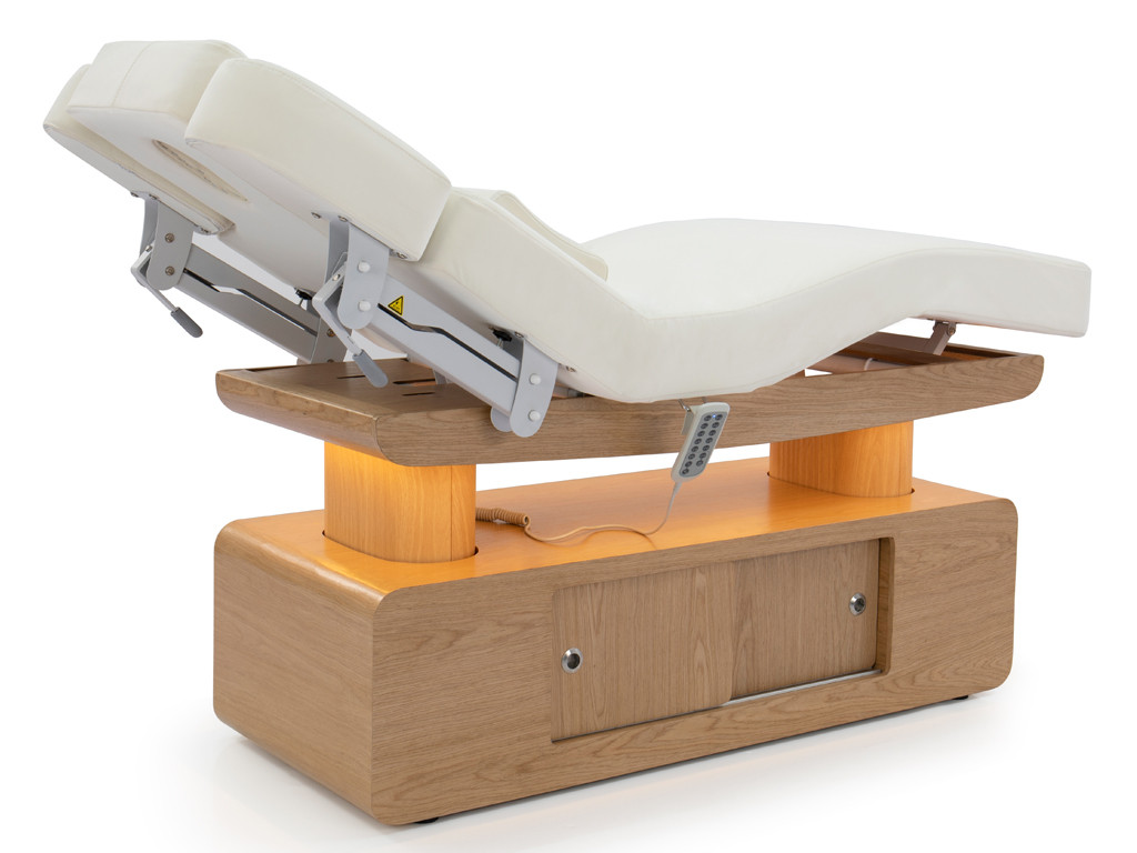Integrované vyhřívání sedací části přispívá k uvolnění svalů a zvyšuje pocit pohody. LED osvětlení dotváří atmosféru relaxace, čímž se lehátko výborně hodí do moderních SPA a kosmetických interiérů.