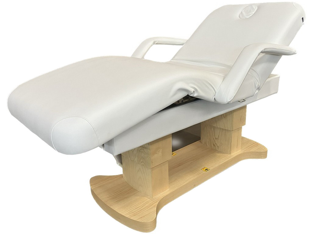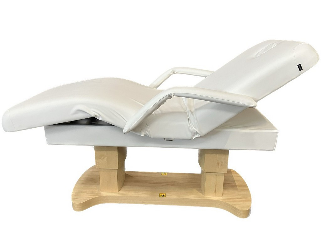 Elektrické SPA lehátko má robustní kovový rám s ukončením z imitace dřeva.
