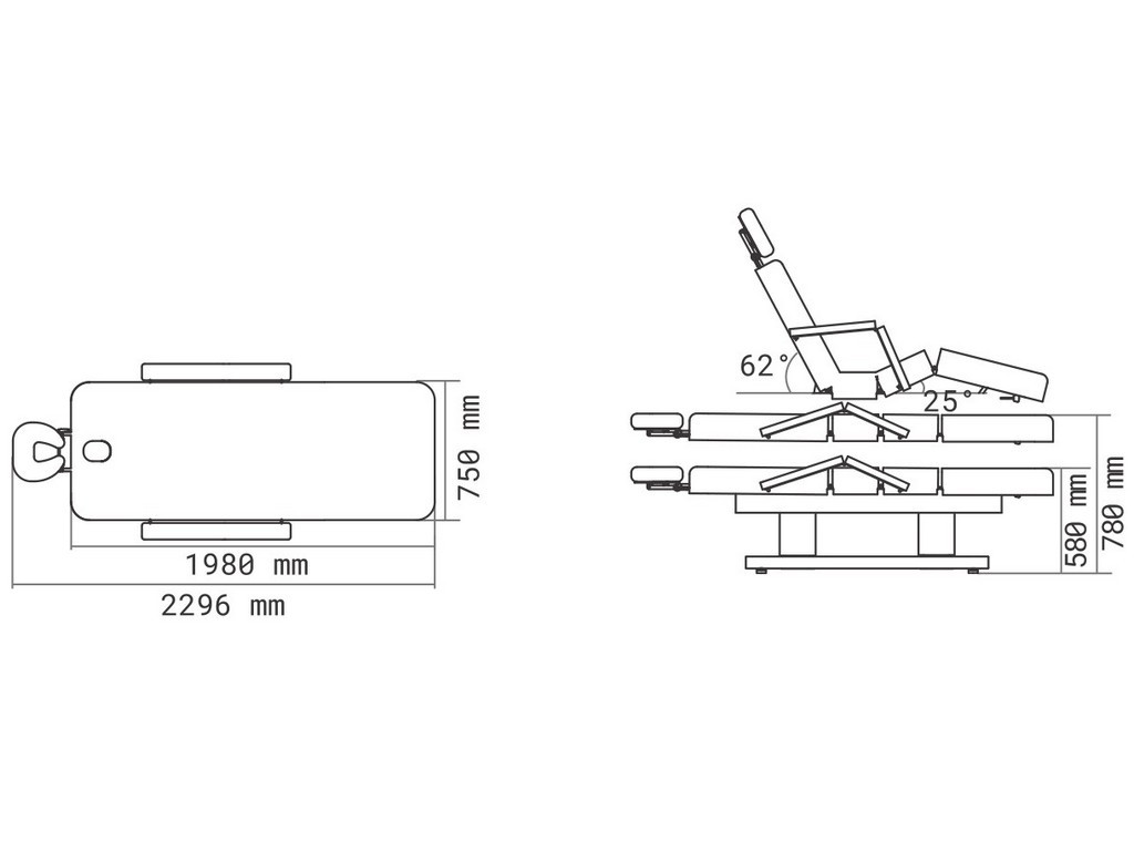 Mimi E4 vyniká extrémním nastavením minimální výšky 58 cm. Šířka 75 cm zajistí dostatečně velkou lehací plochu pro klienta.