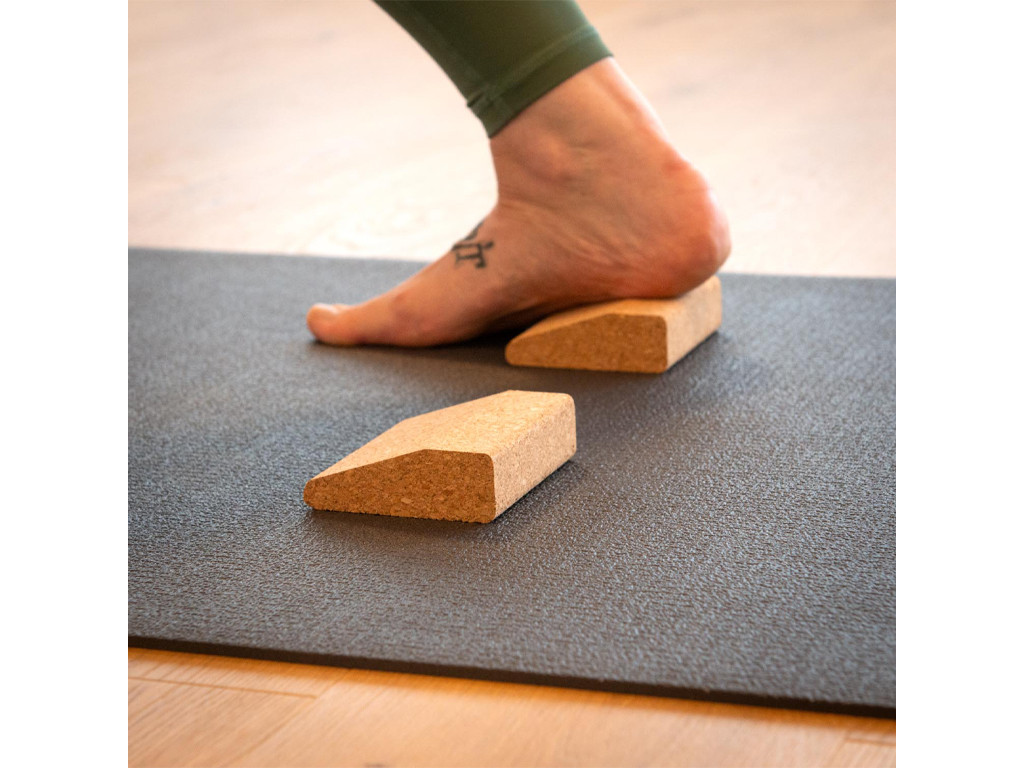Materiál klínu je 100 % přírodní korek, který je ekologický a zároveň velmi odolný. Korek poskytuje příjemný pocit na dotek, výborně drží stabilitu a díky přirozeně protiskluzovému povrchu se během cvičení nepohybuje. Kompaktní rozměry 10 x 9 x 3 cm dělají z klínu snadno přenosný a prostorově nenáročný doplněk, vhodný do jógových studií, na domácí cvičení i na cestování.