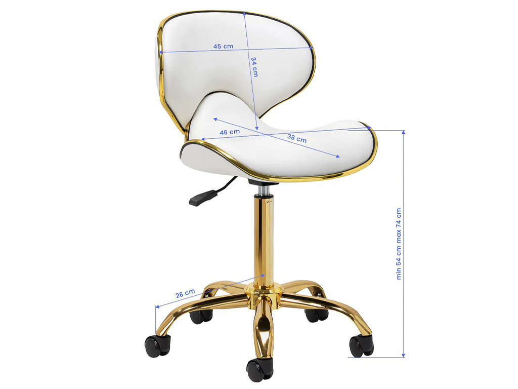 Kosmetická židle Gabbiano Q-4599G je navržena pro profesionální kosmetické a beauty salóny, kde se klade důraz na komfort při dlouhodobé práci, ergonomické sezení a reprezentativní vzhled interiéru.