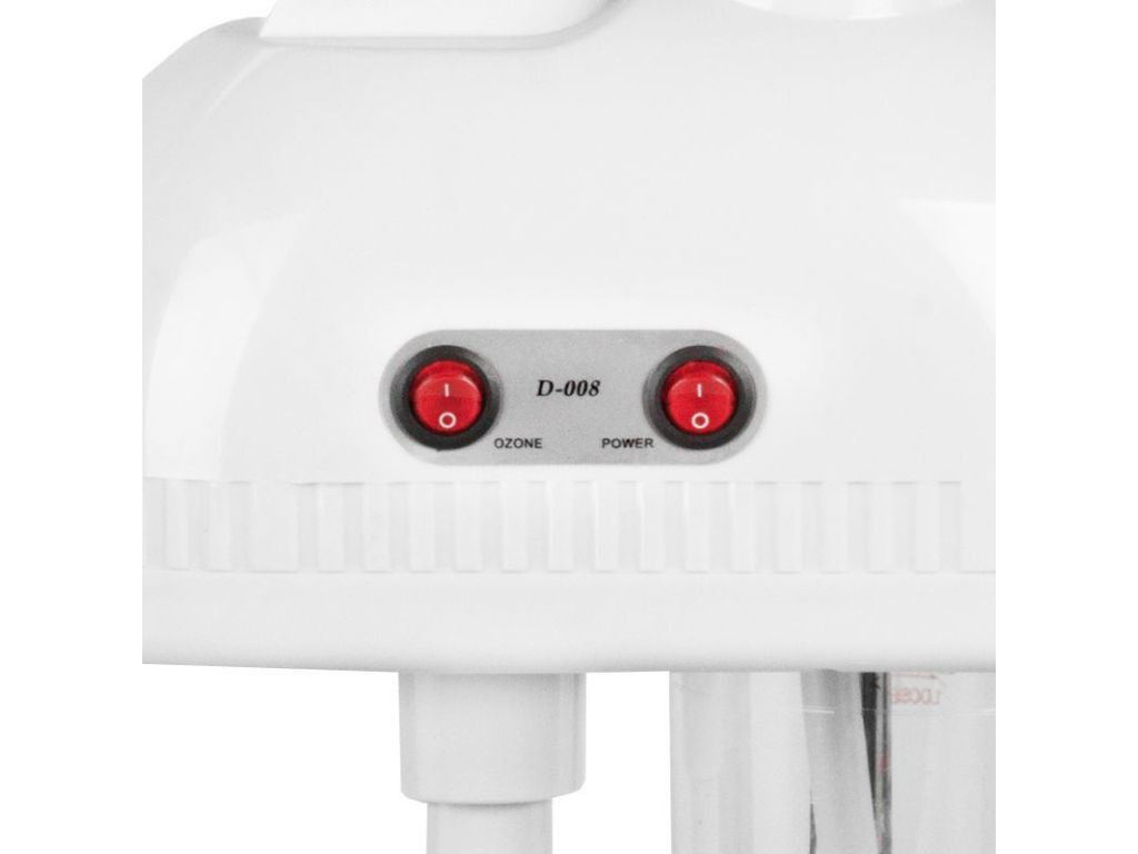Napařování s kosmetickým napařovačem D-008 výborně připraví pokožku na čištění pleti či masáž obličeje a neměl by chybět v žádném kosmetickém salonu. Vícefunkční napařovač na obličej disponuje stativem, díky čemuž se snadno reguluje jeho výška. Podstavec se čtyřmi rameny na gumových kolečkách zajišťuje jeho stabilitu. Součástí balení je zařízení s tryskou, stativ, podstavec na kolečkách a návod k použití.