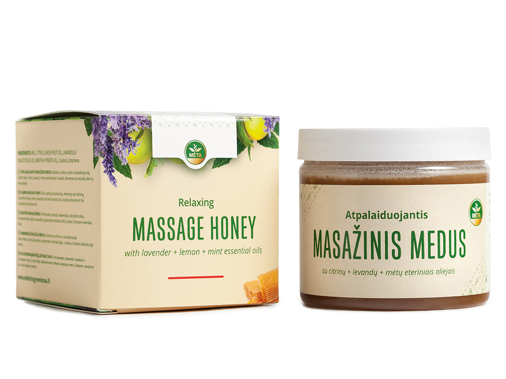 Relaxační masážní med je navržen speciálně na použití při masážích, lázeňských procedurách a v sauně. Je vhodný především pro normální a mastnou pleť. Díky obsahu organického medu a směsi esenciálních olejů z levandule, citrónu a máty má příznivé účinky na pokožku a zároveň působí zklidňujícím dojmem na tělo i mysl.