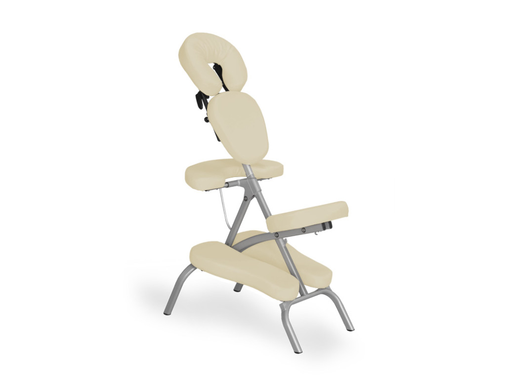 Hliníková masážní židle Travello je určena na sedací masáž. Můžete ji používat v masážním salonu, doma, v kanceláři či v obchodním centru, ale i v tetovacím studiu. Masážní židle má pevný a jednoduchý rám, můžete ji snadno složit a díky pouzdru s popruhem přes rameno pohodlně přenášet. Opěrka hrudníku, hlavy, ale i sedací část mohou být nastaveny v různých polohách, díky čemuž židli snadno přizpůsobíte potřebám zákazníka.