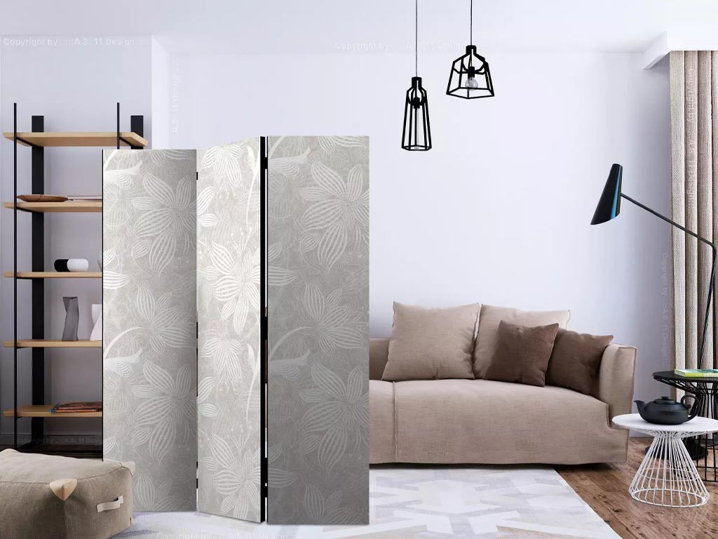 Paraván Fabulo 3-dílný - Bílé květy / Ornamenty 172 x 135 cm | odlišný dizajn na jednotlivých stranách