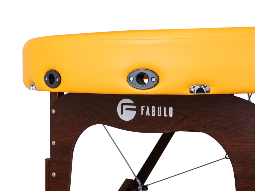 Masážní stůl Fabulo GURU Oval Set je vyroben z kvalitního tvrdého bukového dřeva první třídy s vícevrstvým lakováním pro delší trvanlivost. Maximální stabilitu lehátka zajišťují nadstandardně silné příčné panely, čímž se předchází kolísání stolu během masáže. Fabulo Guru Oval Set s oválným reiki panelem nabízí volný prostor mezi nohama a umožňuje pohodlné sezení maséra. Nadstandardní kvalitu masážního stolu zajišťují i speciálně frézované nohy stolu pro zvýšení stability, pevné protiskluzové pryžové ochrany nohou a ergonomické pogumované šrouby. (Levná lehátka jsou obvykle vyráběna s plastovými nohami, které snadno kloužou na podlaze a s plastovými šrouby, které se uvolňují během masáže a zapříčiňují nestabilitu stolu.)