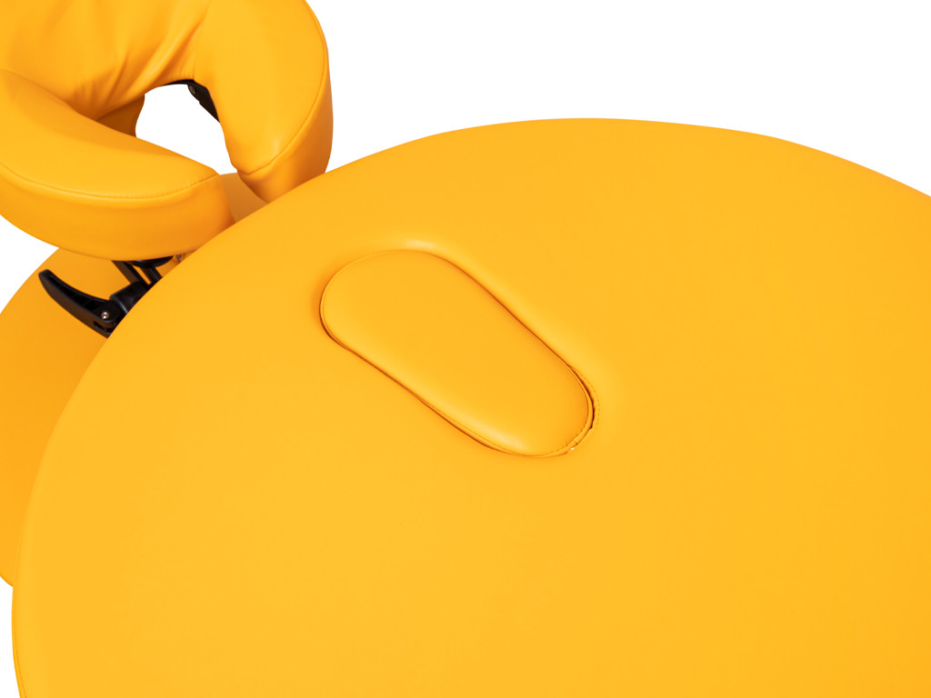 - Masážní lehátko je vybaveno otvorem na obličej, tím je zajištěno příjemné uložení hlavy. Tento otvor se otevírá jednoduše, a to vytažením zátky.