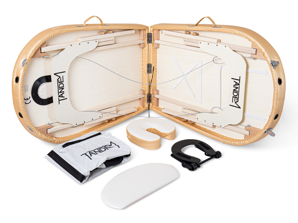Skládací masážní stůl Tandem Profi W2D Oval Contour Duo 195*70 cm | 14,4 kg | bílo-zlatá