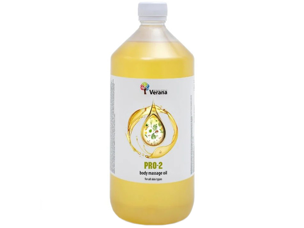 Tělový masážní olej Verana PRO-2 obsahuje směs účinných přírodních olejů bez parfemace. Základ tvoří olej z hroznových jader, mandlový olej, kukuřičný olej, olivový olej a ricinový olej. Nechybí ani tokoferol, tedy přírodní vitamín E.