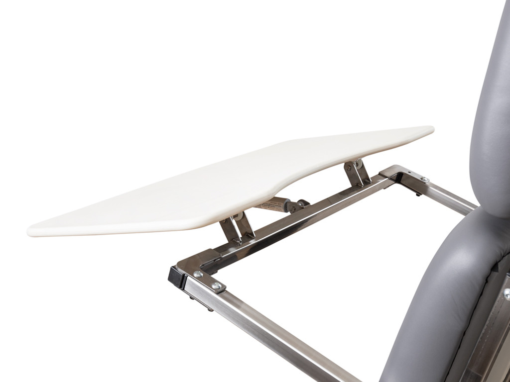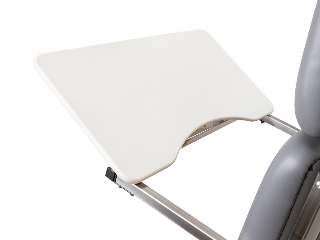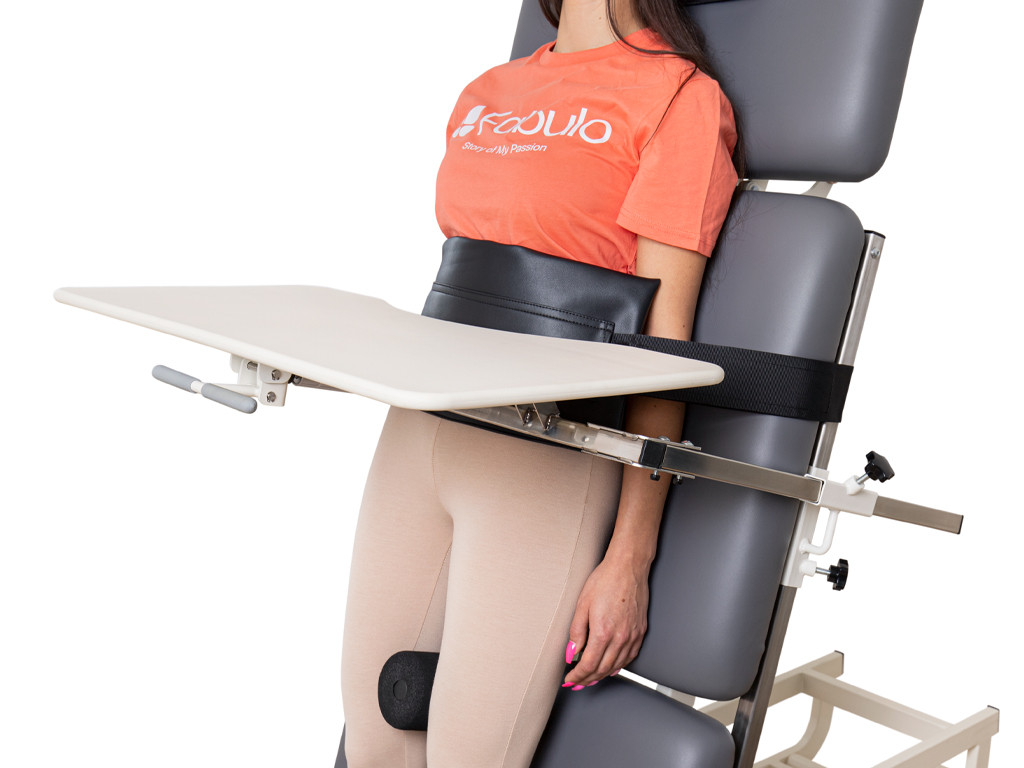 Terapeutický podnos Fabulo Althera 1 je praktický doplněk k rehabilitačnímu lehátku, který poskytuje velkou a stabilní opěrnou plochu pro různé činnosti pacienta během terapie vestoje. Vyroben je z pevného polyethylenu s antibakteriální povrchovou úpravou, což zaručuje snadnou údržbu a maximální hygienu. Jeho zakřivený tvar s výřezem usnadňuje přiblížení se k tělu pacienta, čímž zvyšuje komfort a ergonomii používání. Díky možnosti nastavení výšky a sklonu se dá snadno přizpůsobit individuálním potřebám. Upevňuje se pomocí fixačního držáku na boční kolejnice lehátka.
