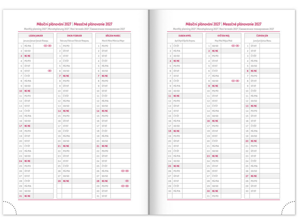 - měsíční plánovací kalendář 2027