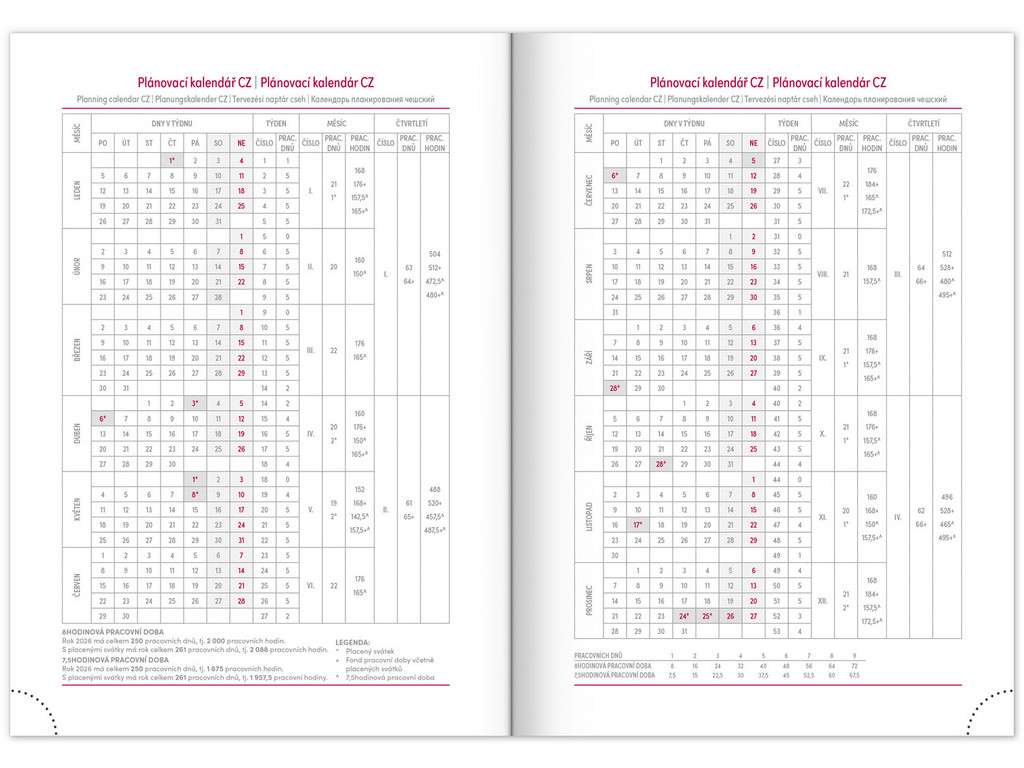 - pracovní plánovací kalendář