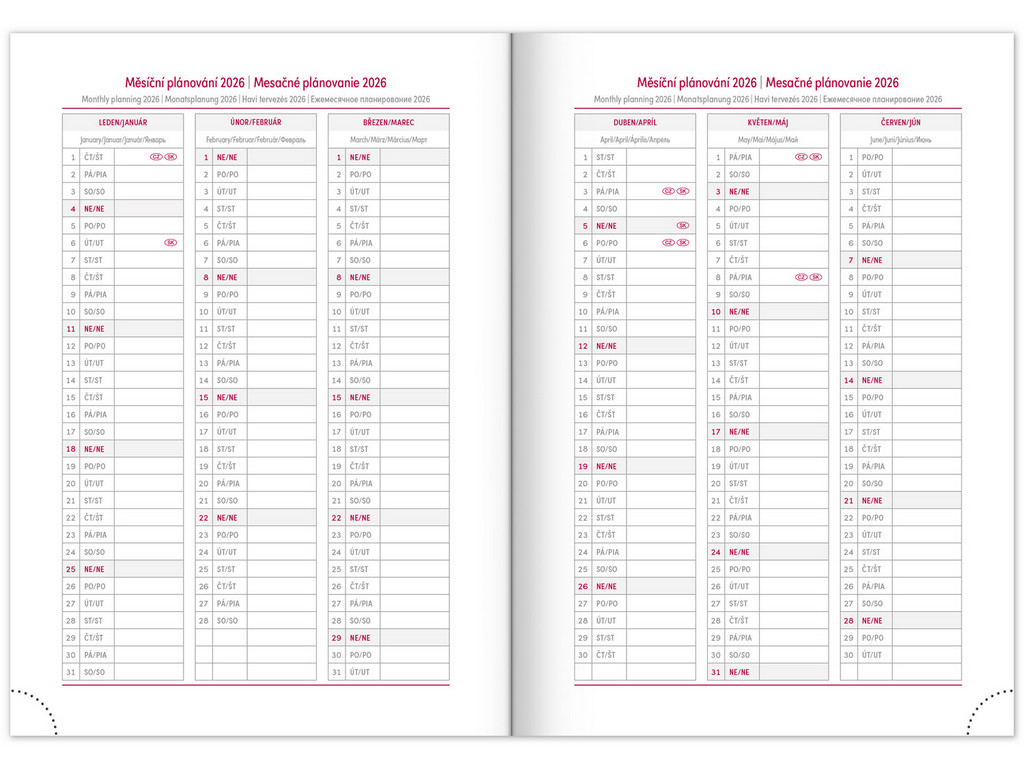- měsíční plánovací kalendář 2026