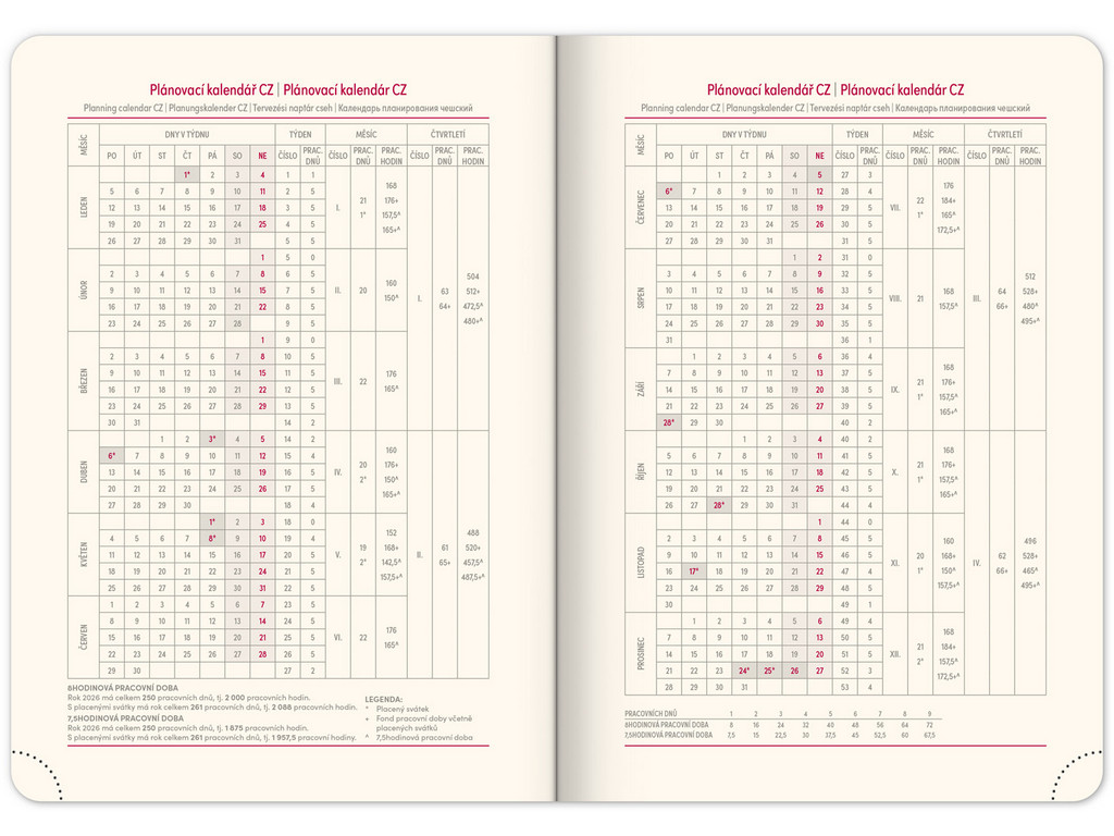 - pracovní plánovací kalendář